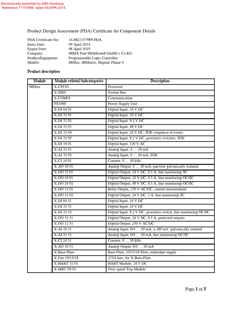 Relay amplifier in a terminal case for safety related circuits in rc1 rc6 according to din v 19250 01 89 the module is tested according to din vde 0116 en298 din v 19250 requirement classes 1 6 and din vde 0160. With the new hima hart solution you can integrate your field devices into your asset management system. We are one of the leading manufacturer supplier of himatrix hima h4135a h4135a relay module in terminal case safety related in china. We don t know when or if this item will be back in stock.