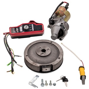This kit includes starter motor with solenoid flywheel with ring gear key switch box with keys. This kit will enable you to convert your pull start machine to electric start. Honda s gx series lives up to the legend and then some. Apparently the flywheel in this kit isn t keyed at the proper angle to work in the post 2011 gx390.